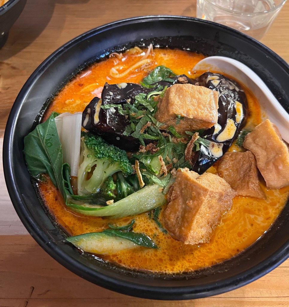 I appreciate having this place in the north! Creamy, hot soup with good spice, appropriate veggies and a generous amount of fried eggplant. After a really hard weekend, I cried while eating this because I was so grateful for it. Feel like that’s a sign that it’s a great laksa.