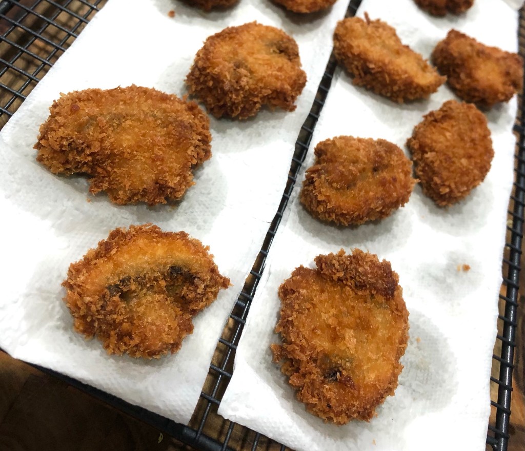 Transfer the panko mushrooms to a paper towel to remove excess oil.
