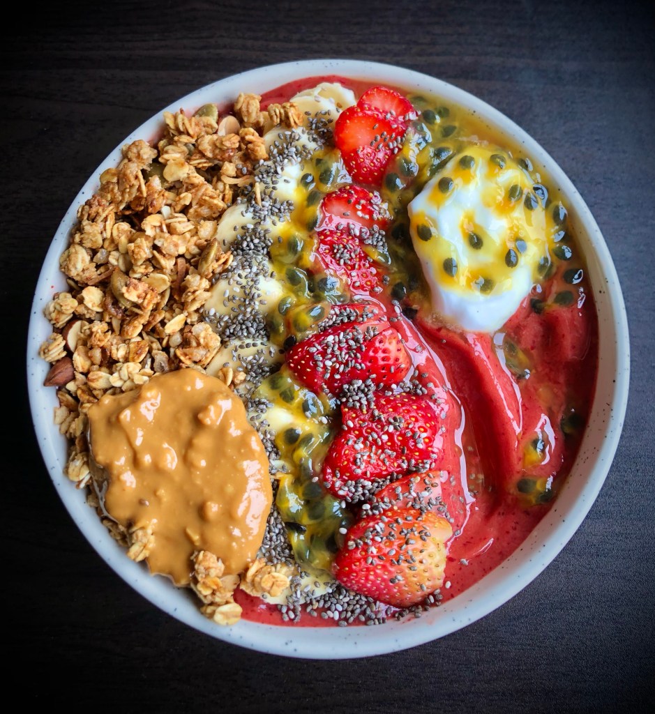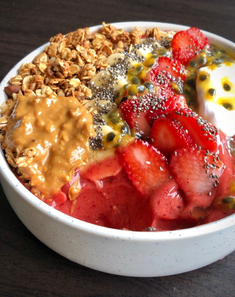So refreshing and healthy! 🙂 You can add whatever toppings you like most. I’ve used peanut butter but you can use almond butter or sunflower butter or omit it.. I used coconut yoghurt as I had it on hand but it is very optional. I’ve used normal granola but you could use chocolate granola or a fancy freeze dried fruit one! Ground flax, choc chips, more nuts, other fruit, seeds, supplement powders etc!