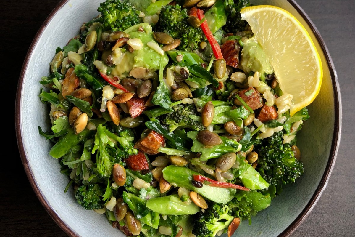 This broccolini salad is my current favourite because it’s healthy and gives you a good dose of fresh greens while still satisfying a meal slot thanks to the deep flavours from the roasted nuts and pumpkin seeds 🙂 Pearl barley or black rice can be added if you’d like some more carbs and you can choose lemon juice or raspberry vinegar in the dressing to change up the flavours 🙂 Video with the whole process at the bottom of the recipe 🥰